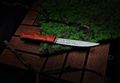 Длинный узкий клинок с прямыми спусками от обуха даёт лёгкое вхождение в материал и ровный контролируемый рез. Такой профиль удобно использовать и по продуктам, и по верёвке или стропе, и по дереву - от строгания растопки до аккуратной подгонки деталей в лагере. Сталь N690 добавляет уверенности: кромка долго остаётся агрессивной, а при необходимости её можно быстро освежить даже в полевых условиях.