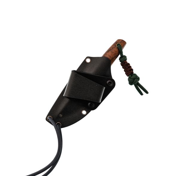 Ножны из Kydex надёжно удерживают "Слоника" и рассчитаны на активное использование. Формованный пластик спокойно переносит влагу, грязь и перепады температуры, легко очищается и не деформируется в обычных условиях. В комплекте идёт шнур для ношения на шее и клипса для крепления на ремень, так что нож можно настроить под свои привычки. Отдельное внимание - ручной росписи ножен в тематике ножа: рисунок подчёркивает образ "Слоника", делает комплект узнаваемым и при этом остаётся практичным решением для ежедневного ношения.
