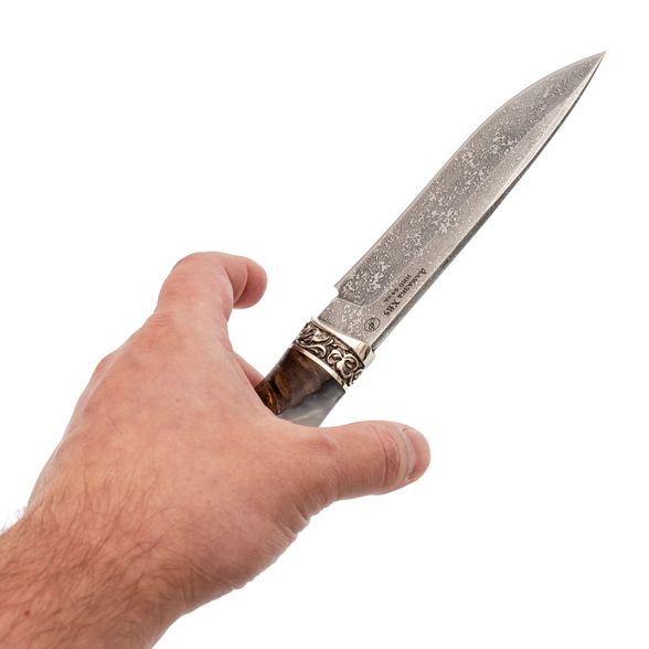 "Волк-2" - это уникальный туристический нож, сочетающий в себе высокое качество и изысканный дизайн. Ручная работа мастеров придает ему особую ценность и делает идеальным подарком для ценителей ножевого искусства.