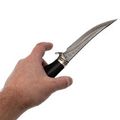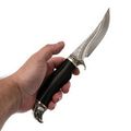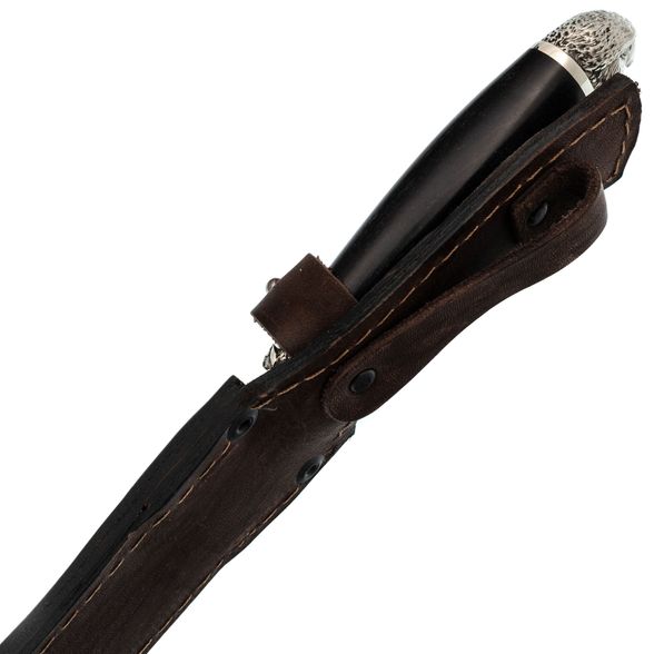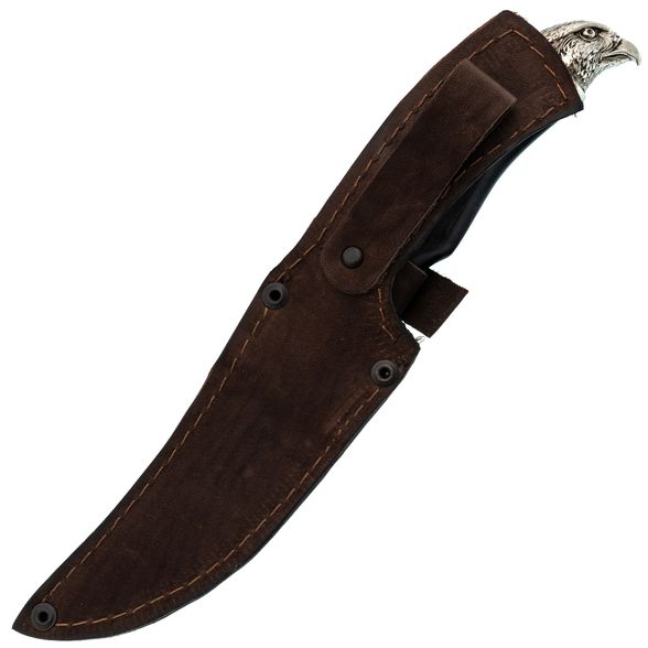 Настоящим мужчинам нужно делать настоящие мужские подарки. Нож Ворон порадует любого, кто увлечен охотой или рыбалкой. Такой нож можно подарить коллеге, другу или боссу. Клинок ножа выполнен из многослойной дамасской стали. По форме клинок напоминает крыло мудрой и сильной птицы. Сходство усиливается благодаря навершию в форме головы ворона. Такой нож станет семейным талисманом или тотемом, который будет приносить удачу в жизни или на охоте. Для хранения и транспортировки используются ножны из натуральной кожи.
