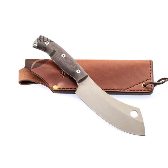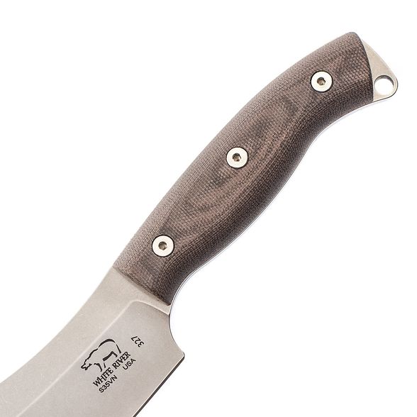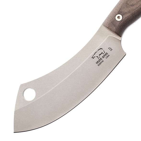 Нож White River Camp Cleaver StoneWash - это многофункциональный инструмент, созданный преимущественно для работы в походных условиях. Его можно использовать для резки и рубки, а также для свежевания дичи или снятия кожи с рыбы. Полевой нож имеет полнохвостовую конструкцию. В данной модели довольно широкий клинок изогнутой формы изготовлен из порошковой стали CPM-S35VN с хорошими антикоррозийными показателями. Рукоять выполнена в виде двух пластин из микарты, скрепленных сквозными заклепками. Шкуросъемный нож для полевых условий предусматривает крепление страховочной лямки или фиксацию на брючном ремне. В комплект входят кожаные ножны, декорированные тиснением в виде логотипа компании White River.