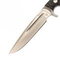 Клинок из стали D2. Полу-нержавеющая инструментальная сталь с высоким содержанием углерода и хрома. Отличается высокой твёрдостью, длительным удержанием режущей кромки и устойчивостью к коррозии в условиях умеренной влажности.