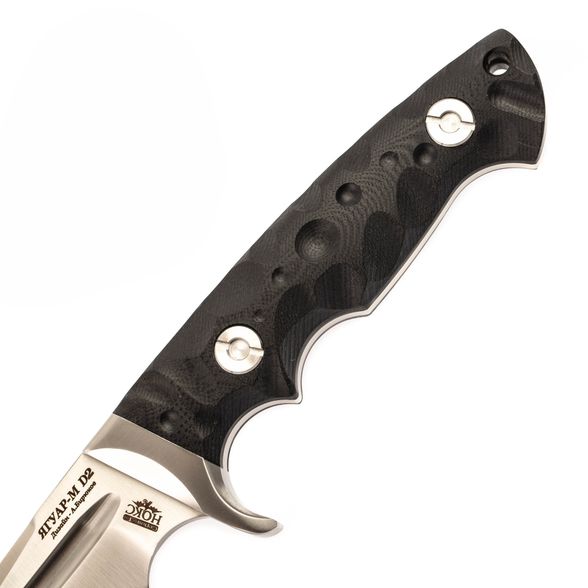 Эргономичная форма рукояти с глубокими подпальцевыми выемками и выраженным упором обеспечивает надёжный и безопасный хват. Благодаря Full-Tang конструкции нож выдерживает значительные нагрузки без риска деформации. Фрезерованные панели из G10 повышают сцепление даже при намокании, позволяя уверенно работать в перчатках и голыми руками.
