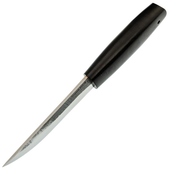 Два раза разделывал подмороженную ногу лося Якутским ножом (аналогичным). После этого решил купить его себе для кухни. Есть один ньюанс: первый нож был переточен на другую сторону и свой новый нож я тоже сразу переточил. Что могу сказать после недели использования: пробил кастрюлю насквозь и кончик даже не затупился, только 0.5мм загнулся как заусенец😄 Режет все подряд! Нож офигенный, но надо приноровиться. Очень рад, что его купил и могу уверенно посоветовать изготовителя! Спасибо большое!