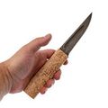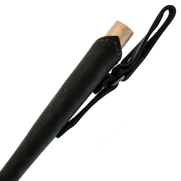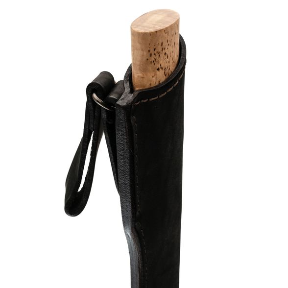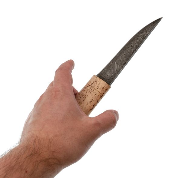 Клинок откован в клин по обуху. Противоположная сторона клинка выгнутая, чтобы при работе нож "не зарывался" в материал.