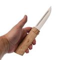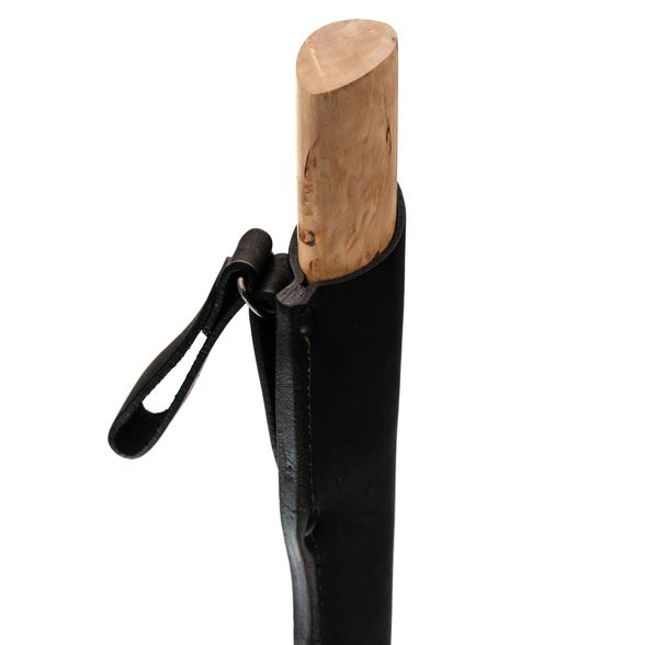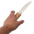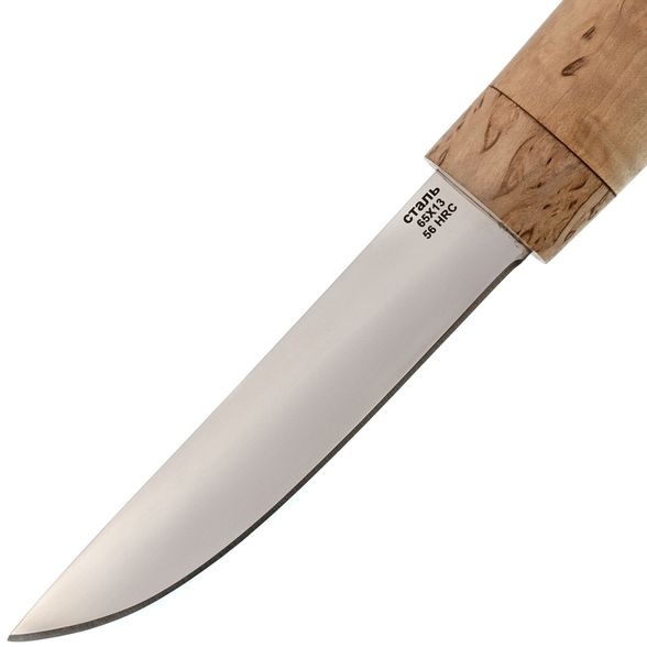 Клинок откован в клин по обуху. Противоположная сторона клинка выгнутая, чтобы при работе нож "не зарывался" в материал.