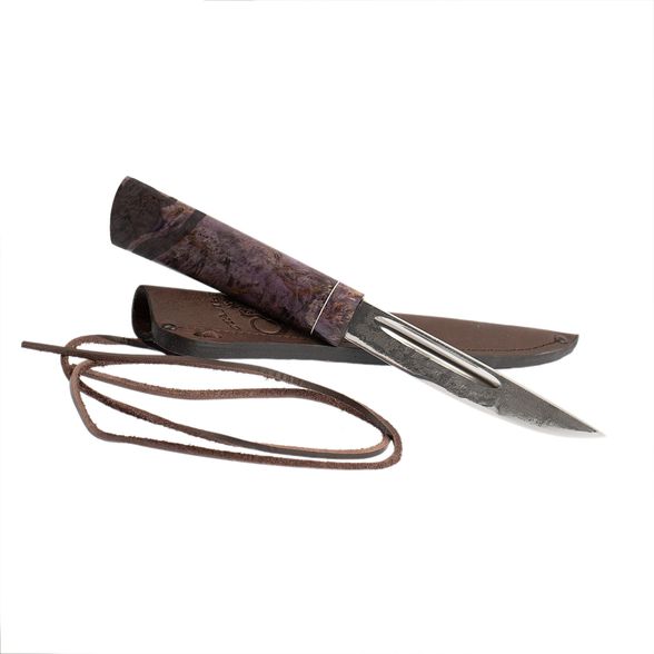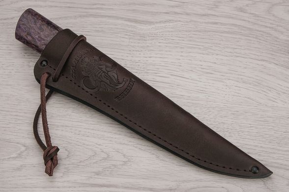 Нож Якутский средний, сталь Х12МФ, фиолетовая карельская береза
