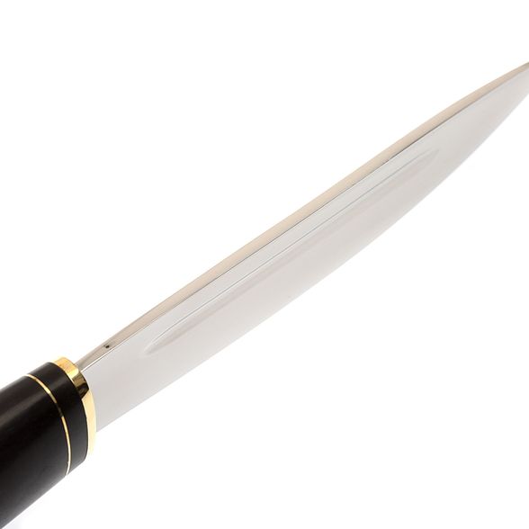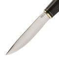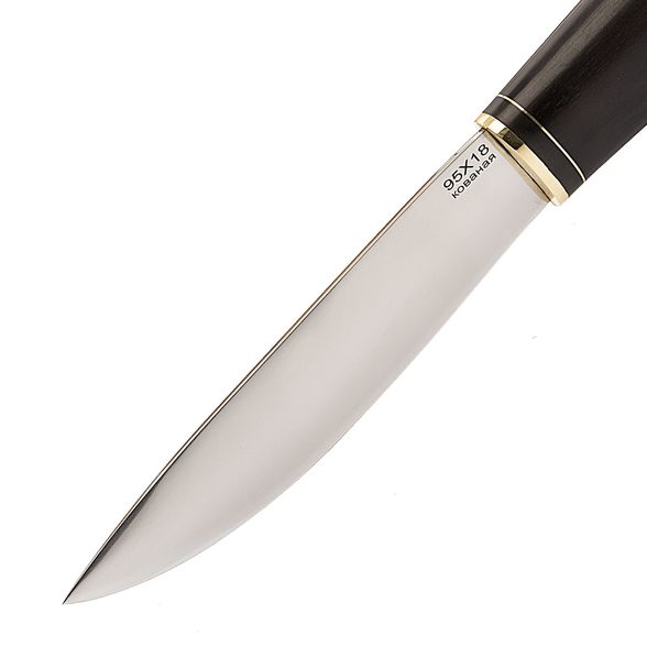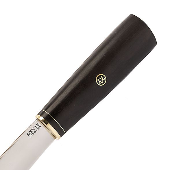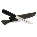 НОЖ ЯКУТСКИЙ, СТАЛЬ 95Х18, ГРАБ это надежный и лаконичный вариант для ценителей универсальных моделей. Работоспособность такой геометрии проверена столетиями. Якуты использовали любую подручную железку, чтобы методом холодной ковки получили максимально простой и надежный станок. При толщине обуха в 4 миллиметра нож имеет спуск по левой стороне от самого обуха и плоскую правую голомень, что обеспечивает максимально тонкую режущую кромку. Еще одно из удобств этого ножа заключается в том, что его достаточно просто точить, так как работа идет только с одной стороны. Объемная бочкообразная рукоять обеспечивает уверенную фиксацию за счет своей формы. Для хранения и транспортировки используется поясной чехол с петлей для свободного подвеса