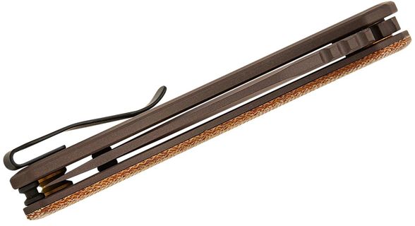 Алюминиевый спейсер и кнопка с анодированием в цвет бронзы - добавляют стильные акценты и завершают общий облик ножа.