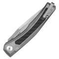 Рукоятка изготовлена из титана - материала, обеспечивающего прочность при минимальном весе. Для дополнительного комфорта и визуальной выразительности модель оснащена карбоновыми вставками с обеих сторон. Такое сочетание придаёт ножу изысканный внешний вид и способствует удобному хвату.