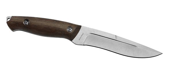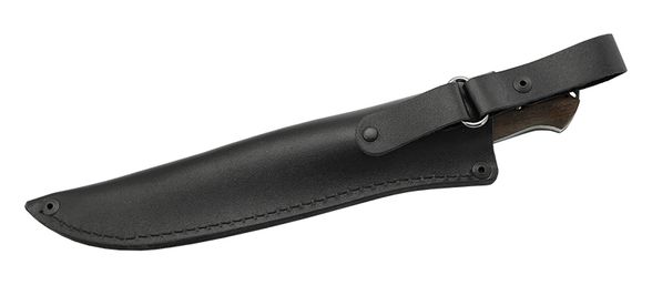 Рукоять ножа выполнена с учётом анатомии ладони и обеспечивает уверенный хват без ощущения усталости даже при длительной работе. Благодаря цельнометаллическому монтажу (фултанг) нож сохраняет прочность по всей длине и выдерживает значительные нагрузки. Древесина венге не только устойчива к влаге и повреждениям, но и придаёт ножу строгий, естественный внешний вид.
