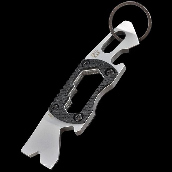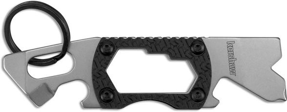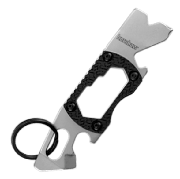 Брелок мультитул Kershaw Pry Tool-2 K8810X - это многофункциональное изделие от компании Kershaw, выполненное в необычном форм-факторе. В состав входят открывалка для бутылок, два вида отверток (плоская и крестовая), мини-монтировка, инструмент для зачистки проводов и шестигранный шлиц трех размеров. Также здесь имеется кольцо, чтобы вы могли крепить мини мультитул брелок к ключам. Для всех комплектующих использована высокоуглеродистая сталь 8Cr13MOV с хорошими показателями прочности а антикоррозийности. Карманный мультитул брелок оснащен рукоятью из термопластика GRN с ребристой поверхностью. Поэтому несмотря на компактные размеры вы сможете надежно зафиксировать инструмент даже в мокрой или жирной ладони.