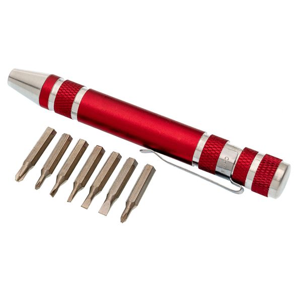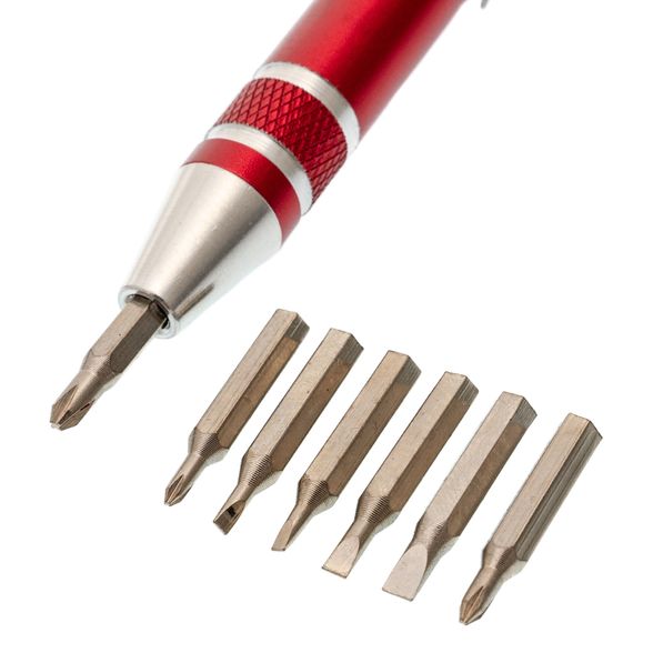 Представляем инновационное решение для ремонтных работ – отвертку 8 в 1, выполненную из алюминия для идеального сочетания лёгкости и прочности. Стильный корпус с рельефными насечками обеспечивает максимально надёжное удержание, даже когда руки мокрые или в перчатках. В наборе – 8 бит: разнообразные размеры - четыре крестовых и четыре плоских шлицевых насадок, каждая из которых подобрана для выполнения специфических задач. Умное хранение бит внутри рукояти делает инструмент компактным, а магнит в носике бережно фиксирует нужный элемент, предотвращая его выпадение. Благодаря встроенной клипсе отвертку можно удобно носить в кармане, что делает её незаменимым помощником в повседневных делах.