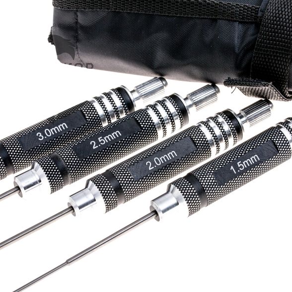 В наборе поставляется 4 ключа HEX (шестигранник) с размерами: