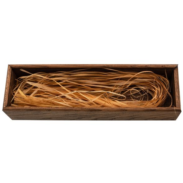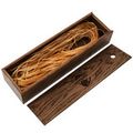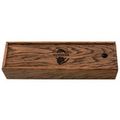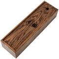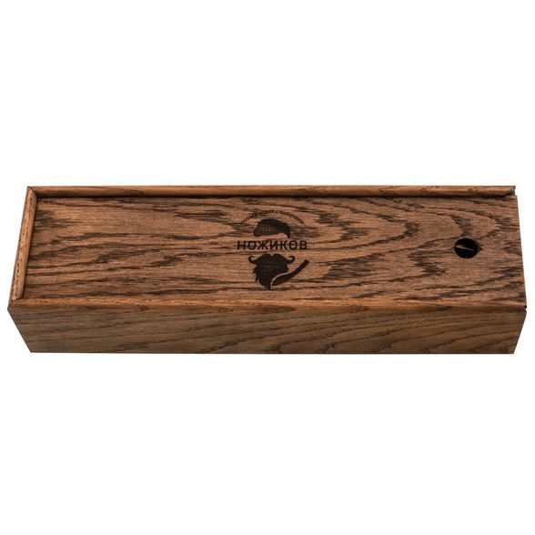 В коробку помещаются большинство складных ножей. Сам нож погружается в декоративную стружку, благодаря чему не бьется и не царапается о стенки. Выдвижная крышка фиксируется за счет трения.