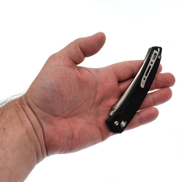Качественный полноразмерный складной нож с харизматичным клинком в форме Tanto. Лезвие выполнено из стали 8Cr13MoV, которая долго сохраняет остроту и устойчива к коррозии. Эргономичная рукоять, удобный замок и продуманный механизм открытия делают этот нож надежным спутником на каждый день. Он лёгкий, прочный и отлично сбалансирован.