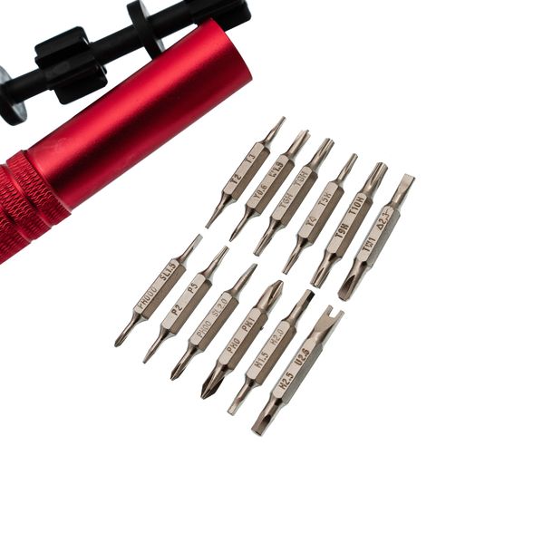 Многофункциональная отвёртка с набором из 24 бит, включающим самые распространенные типы винтов. Она пригодится не только для обслуживания ножа, но и для множества других задач — от ремонта бытовой техники до настройки гаджетов.