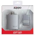 Подарочный набор ZIPPO: фляжка 89 мл и ветроустойчивая зажигалка Brushed Chrome, латунь/сталь, серебристый цвет, в коробке с подвесом
