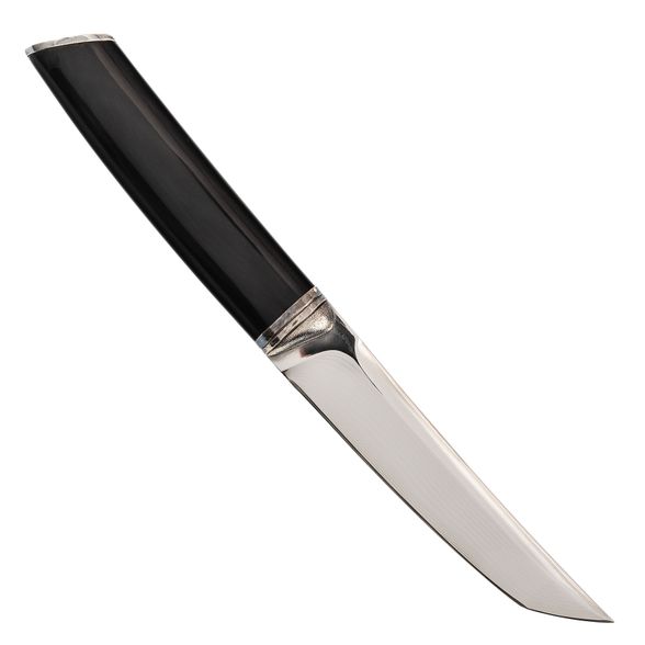 Подарочный нож Танто, многослойная сталь, рукоять рог буйвола — это артефакт, который выполнен по национальным мотивам. Современные дизайнеры достаточно просто обращаются с аутентичными формами, что позволяет создавать поистине уникальные вещи. Это нож сочетает в себе лаконичную простоту короткого японского меча, высокое мастерство ручной работы и современные технологии обработки металлов. Многослойная сталь, из которой выполнен клинок уточена таким образом, что на спусках видны слои различной толщины. Такой прием сам по себе отлично дополняет внешнюю стилистику. Простая бочкообразная рукоять уверенно ложится в руку в процессе работы.