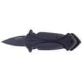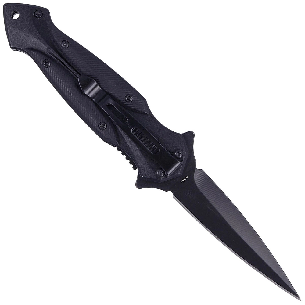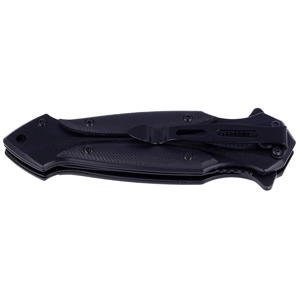 Клинок толщиной 3 мм выполнен из нержавеющей стали 440A и покрыт чёрным защитным слоем. Его гладкая, плоско-заточенная форма обеспечивает чистый и точный рез. Открывается он с помощью плавника, который в рабочем положении выполняет роль упора. Пружинный механизм делает процесс открытия быстрым и мягким, а замок Liner Lock фиксирует клинок надёжно и безопасно.