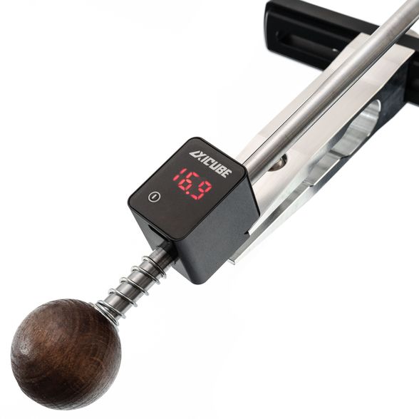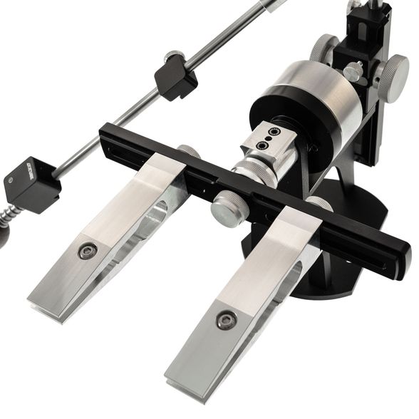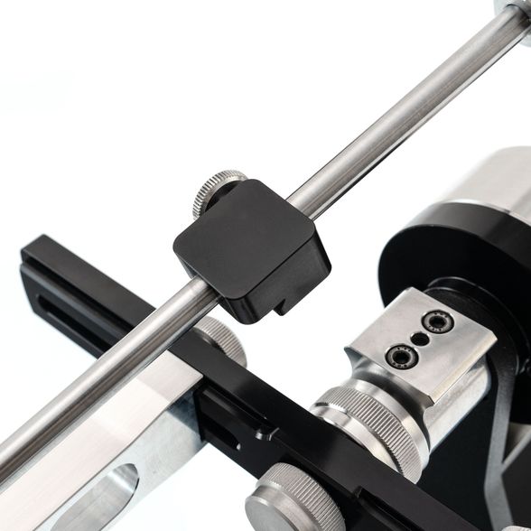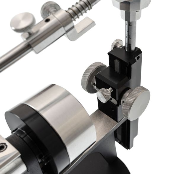 - В комплекте с держателем абразива имеется устройство для измерения угла заточки – Axicube. Разработанный специально для систем заточки угломер встроен в корпус подвижного упора держателя и позволяет отслеживать параметры угла заточки в реальном времени. Axicube имеет жесткую связь с держателем абразива и находится в плоскости абразивного камня. Это позволяет получить максимальную точность угла в процессе работы. Позволяет выставлять угол с точностью до 0,1°