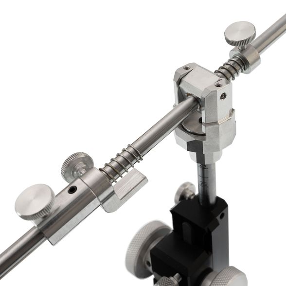 - Безотказный поворотный механизм имеет широкий рычаг, который облегчает вращение и обеспечивает надежную авто-фиксацию рамки для зажимов. Благодаря системе пружин и подшипников рама переворачивается без износа механизма. Корпус системы авторазворота выполнен из прочного авиационного алюминия, с анодированием в черный цвет