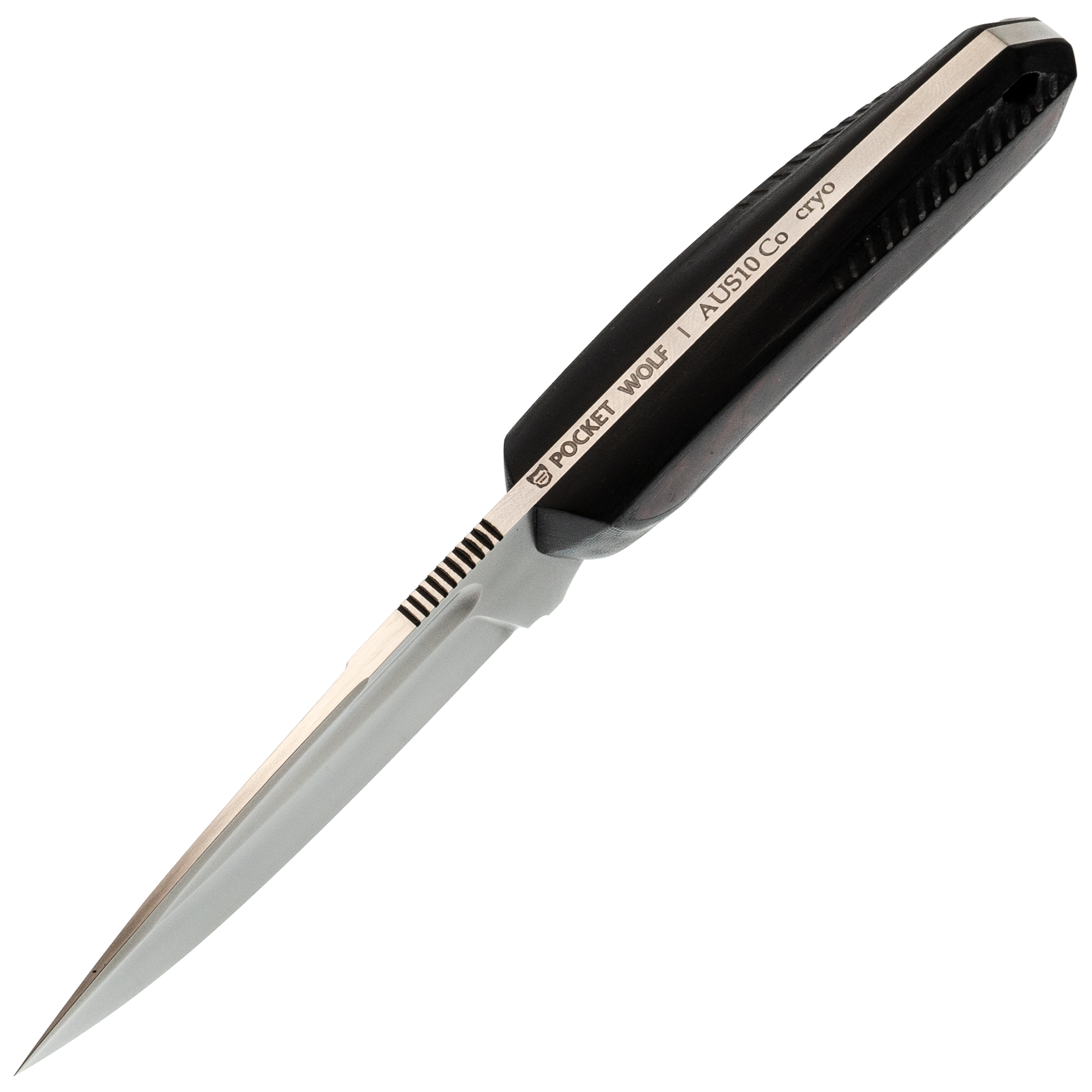 Нож Pocket Wolf Мини Тактик с долом, сталь AUS10Co, рукоять G10, черный с красной вставкой