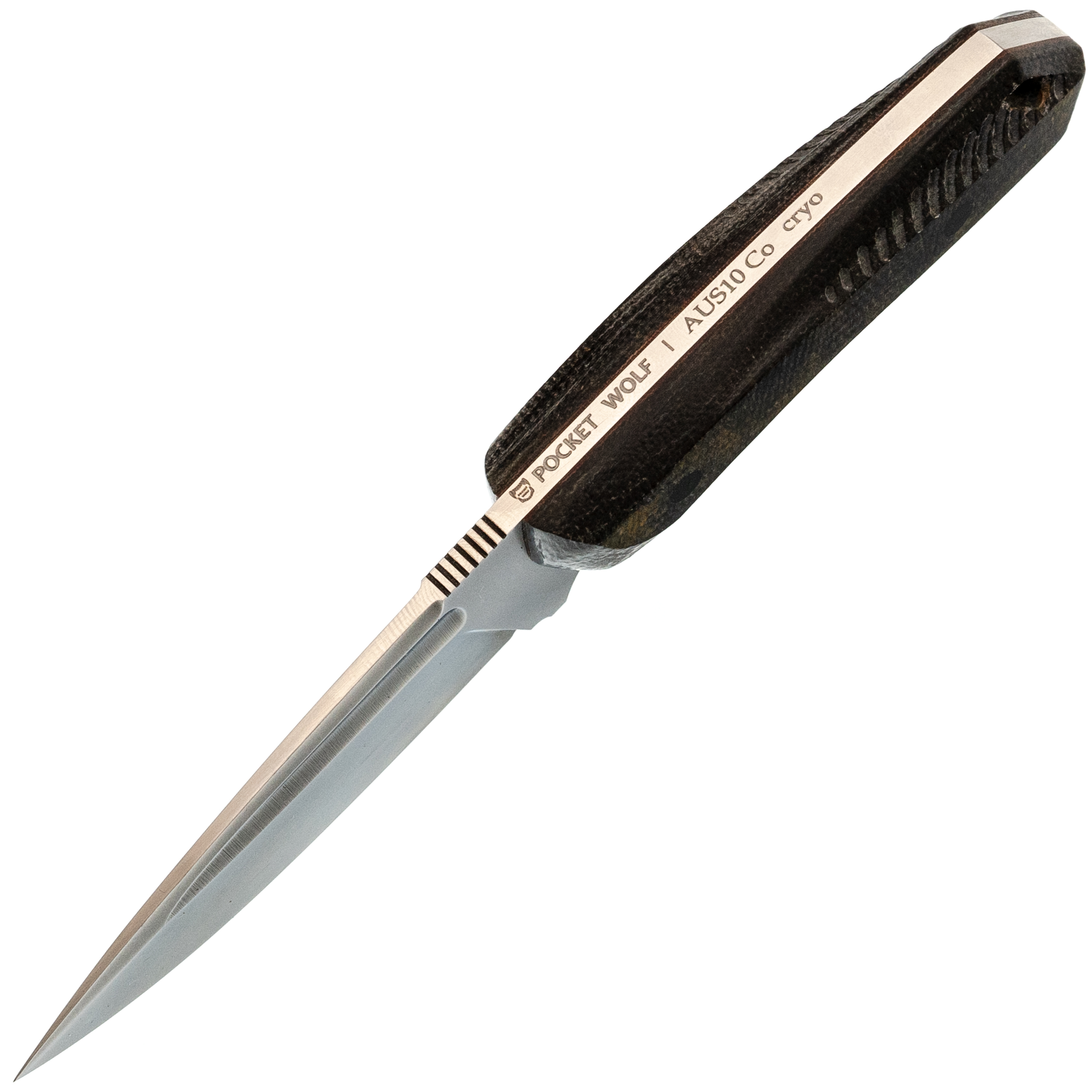 Нож Pocket Wolf Мини Тактик с долом, сталь AUS10Co, рукоять микарта, черно-желтый