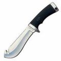 Guthook — крюк для безопасного вскрытия брюшной полости, Lanyard Hole — отверстие или приспособление в рукояти ножа для страховочного корда или ремня., Больстер и навершие из нержавеющей стали