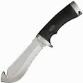 Guthook — крюк для безопасного вскрытия брюшной полости, Lanyard Hole — отверстие или приспособление в рукояти ножа для страховочного корда или ремня., Больстер и навершие из нержавеющей стали