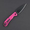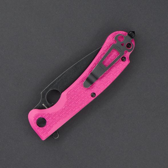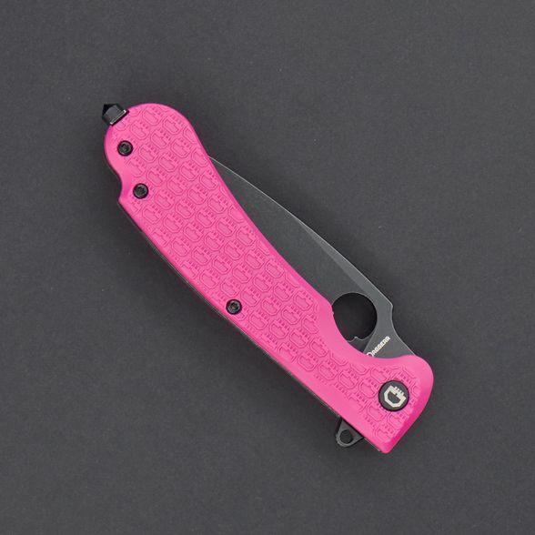 Рукоять ножа состоит из нержавеющей стали и термопластика FRN, где стальные лайнера выступают надежной базой для накладок. Термопластик FRN отличается легкостью, прочностью и простотой в уходе, а сталь обеспечивает долговечность конструкции. Особое внимание привлекает яркий розовый цвет рукояти, а замок Liner-Lock гарантирует стабильную фиксацию для безопасного использования в любых условиях.