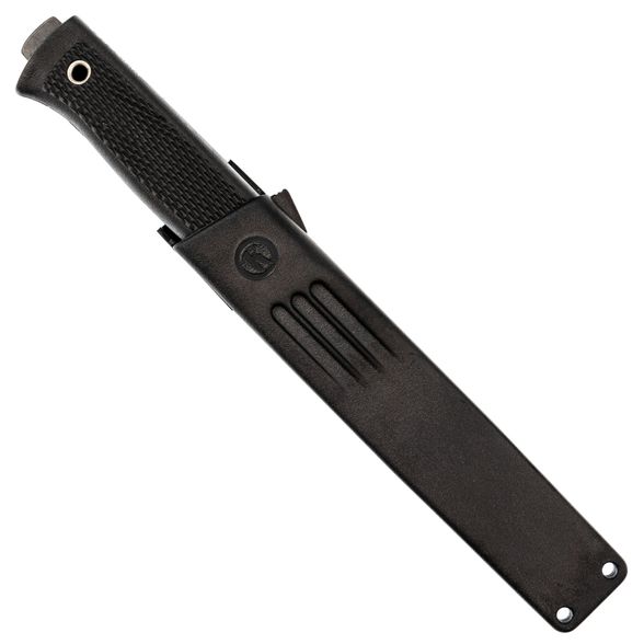 Наличие рифления на рукоятке, сделанной из удароустойчивого эластрона позволяет удобно, без лишних усилий удерживать нож и в перчатках, и без.