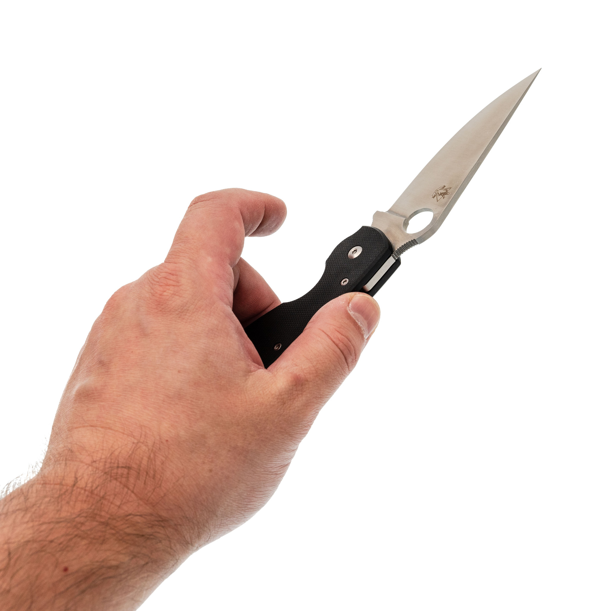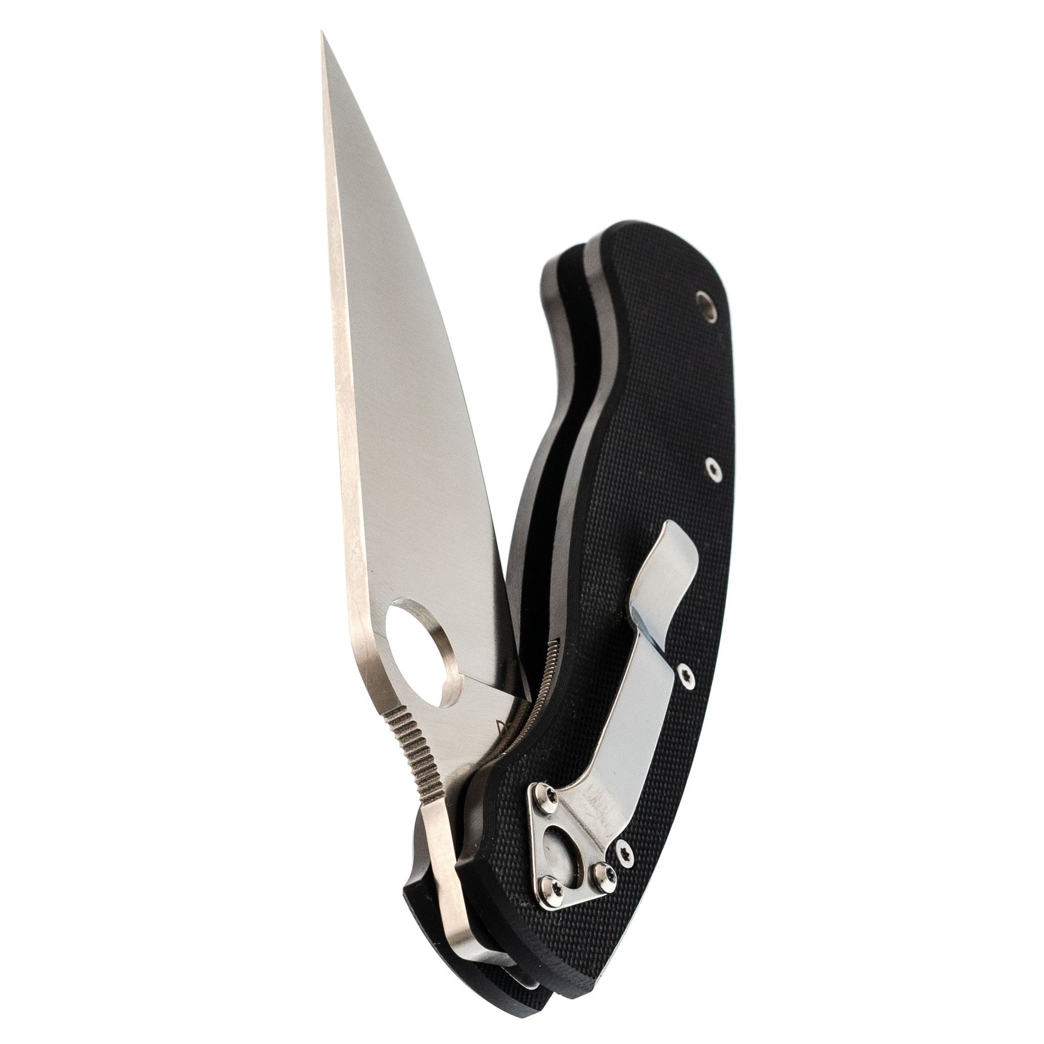 Клинок с тройным клином постепенно утончается к острию, что делает кончик особенно деликатным и удобным для тонкой работы. Прямые спуски обеспечивают эффективный рез без лишнего усилия. Благодаря круглому отверстию открыть нож можно одной рукой, а шайбы в механизме оси делают работу плавной и защищают от загрязнений. Надёжность в работе поддерживает замок Liner-Lock.