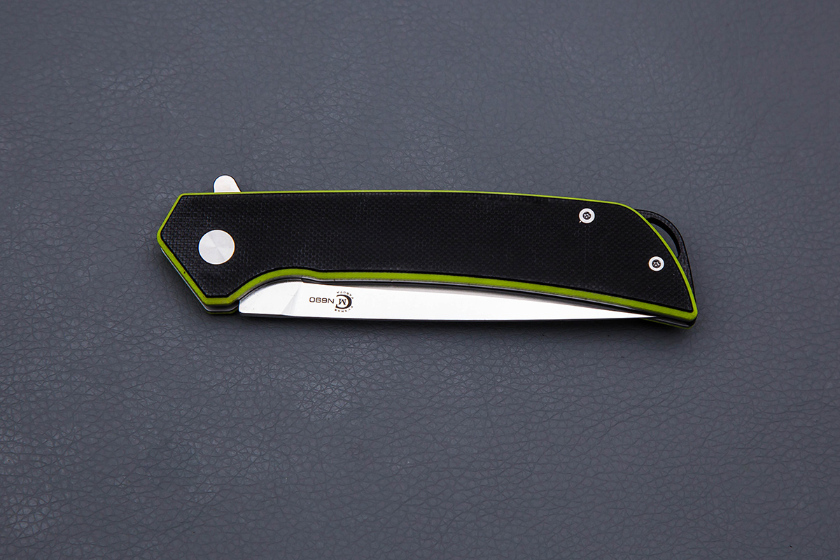 - Сталь N690 - нержавеющий сплав с хорошим балансом твёрдости, стойкости к коррозии и удержания заточки. Хорошо подходит для ножа, который часто используется в быту и на улице.