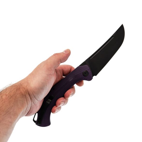 Эргономичная форма ручки позволяет работать без лишнего напряжения. Она расположена выше линии клинка, что облегчает рез на ровной поверхности. G10 даёт уверенный хват даже мокрой рукой, а клипса глубокой посадки делает ношение незаметным.