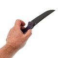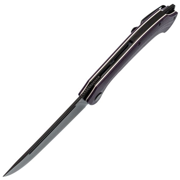 Широкий клинок с профилем Upswept-Point сразу напоминает восточные традиции. За счёт плавного изгиба режущей кромки удобно шинковать овощи, мясо или хлеб. Тонкое сведение и прямые спуски делают работу лёгкой и аккуратной. Подшипники в оси обеспечивают мягкое и быстрое открывание через Front Flipper.