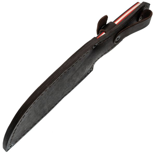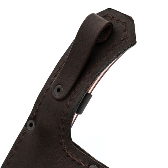 Ножны, выполненные из натуральной кожи, придают ножу дополнительный стиль и защищают его от повреждений. Благодаря жёсткому подвесу, вы можете носить нож на ремне, не беспокоясь о безопасности. Хлястик для надёжного удержания добавляет удобства, позволяя всегда иметь инструмент под рукой в любых условиях.