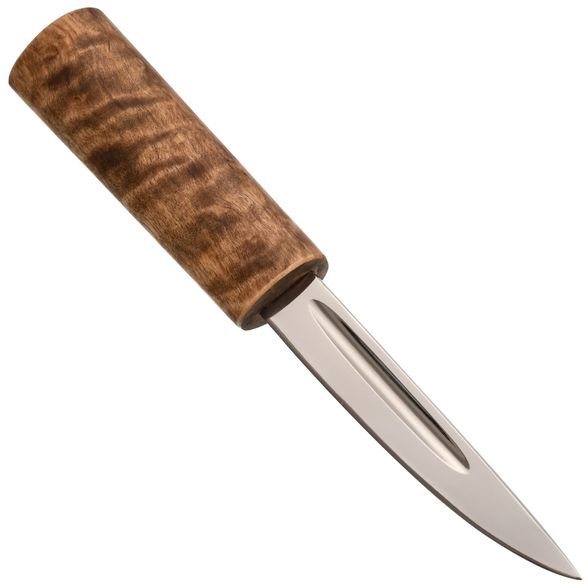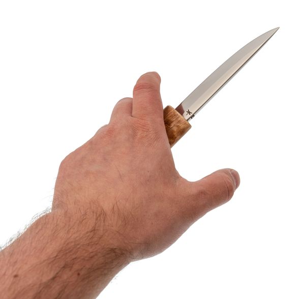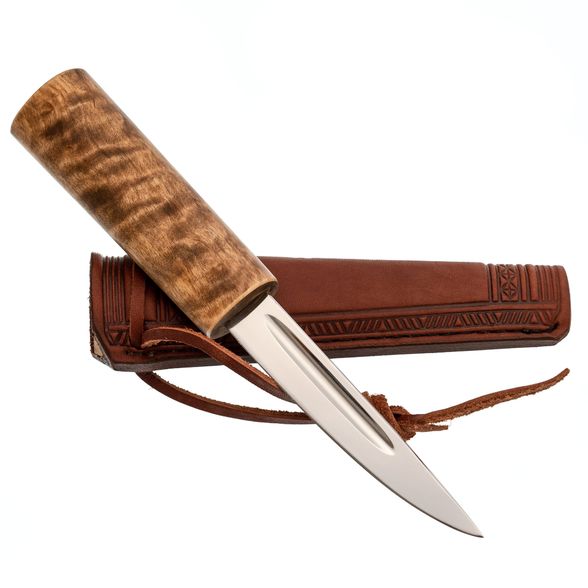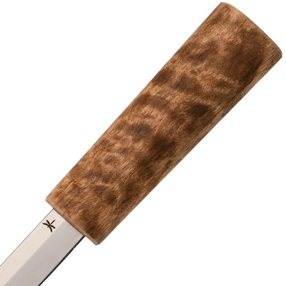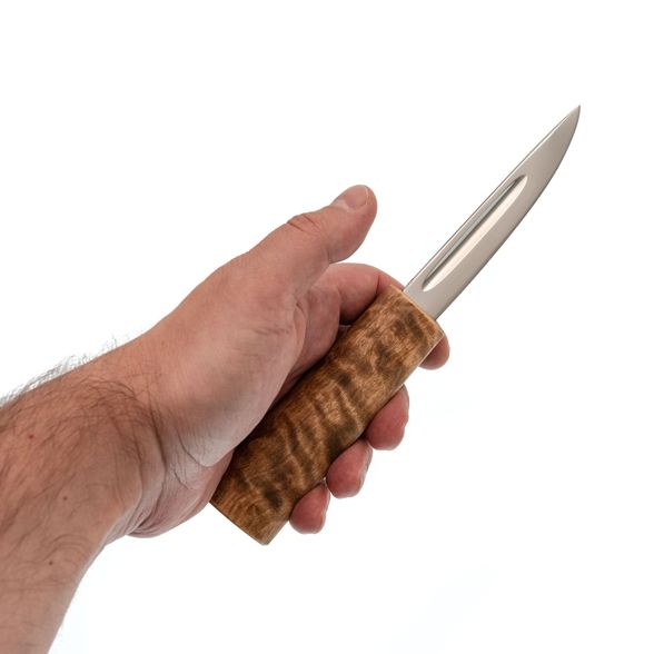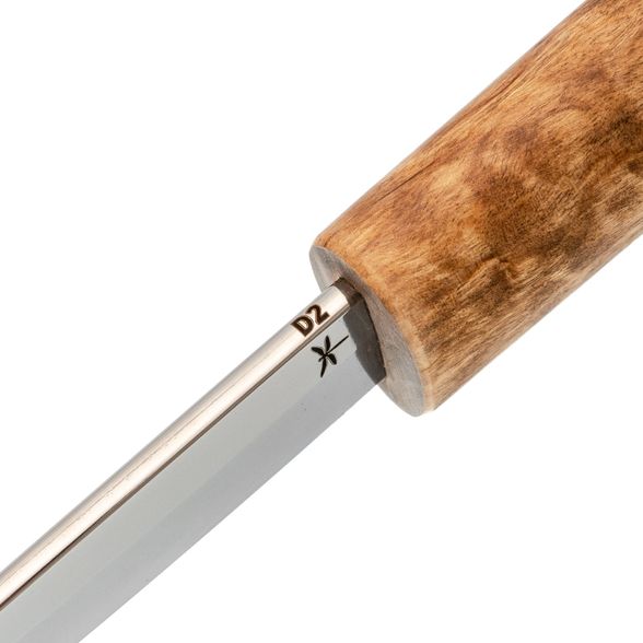 - Рукоять: стабилизированная карельская берёза — не боится влаги и перепадов температур
