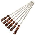 Комплектация набора "Царский No3" порадует даже самых требовательных любителей пикников и барбекю. В набор входит шесть шампуров с удобными деревянными ручками, покрытыми лаком, на которых можно приготовить сочные куски мяса или овощей. Фляжка и шесть металлических стопок создадут атмосферу праздника и позволят насладиться любимым напитком. Нож "Кизляр" с его острым лезвием идеально подойдет для разделки мяса, а подставки под шампуры помогут удобно разместить их во время приготовления. Разделочный топорик и складной нож станут незаменимыми помощниками при подготовке дров для розжига, а вилка поможет легко перевернуть куски мяса на гриле. Овальная решетка-гриль для мангала обеспечит идеальную жарку для ваших блюд. После вкусного ужина вы можете расслабиться и сыграть в карты с друзьями, используя колоду игральных карт, которая также входит в набор. Все эти предметы удобно разместятся в вместительном деревянном чемодане с размерами: длина 75,5 см, ширина 18 см и высота 11,5 см. Чемодан не только обеспечивает удобство транспортировки, но и защищает содержимое, сохраняя его в отличном состоянии.