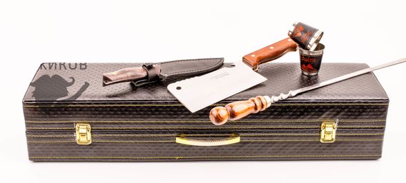 Набор с шампурами в коробке из элитной кожи (Элит-М)