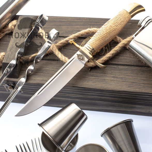 Для эстетичного и удобного отдыха возьмите с собой этот набор. Шампура дадут возможность приготовить шашлык или овощи на углях, а фляжка и набор стопок сделают поездку еще более приятной. Примите решение заказать подарочный набор «Шкатулка-3».