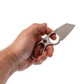 Лезвие Bowtie выполнено из стали D2 — надежного, проверенного материала с высоким содержанием углерода. Эта сталь отличается превосходной твердостью, долго держит заточку и устойчива к механическим нагрузкам. Даже при активном использовании нож сохраняет остроту и функциональность на долгое время. Благодаря открытой рукояти, Bowtie остается максимально легким и удобным для длительного ношения, не ощущаясь на теле или в кармане.