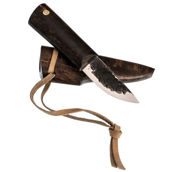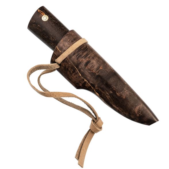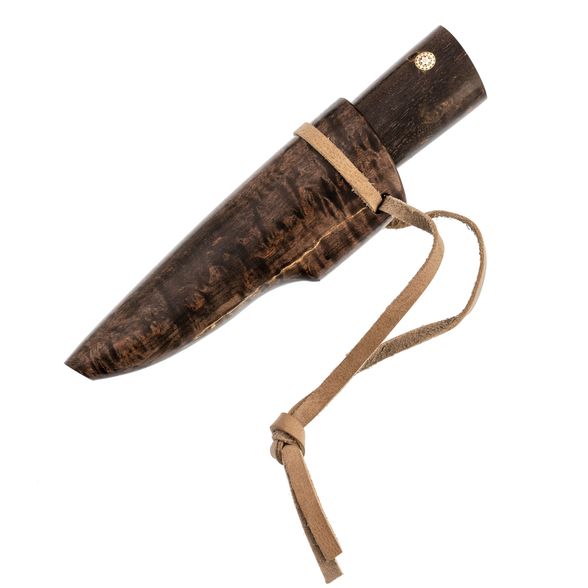 Шейный Северный нож, сталь Х12МФ, карельская береза коричневая, деревянные ножны