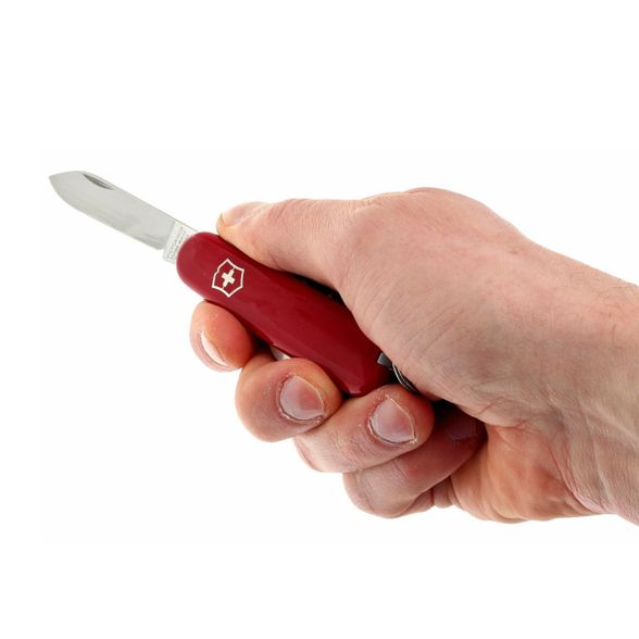 Рукоять выполнена из прочного и проверенного временем пластика Cellidor. Этот материал устойчив к истиранию, не боится ударов и сохраняет внешний вид даже при длительном использовании. Красный цвет рукояти — знаковый элемент швейцарских армейских ножей. Он был выбран ещё в середине XX века для того, чтобы нож было легче заметить в траве или на снегу. С тех пор красный стал неотъемлемой частью фирменного стиля Victorinox, подчёркивая как традиции, так и швейцарское качество.