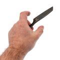 Прямые спуски от обуха дают тонкое и острое подводящее лезвие. Клинок режет сходу, без лишнего давления. Ширина его умеренная, так что прочности для рядовых задач хватает с запасом. Кончик тонкий и цепкий - для работ, где нужна ювелирка.