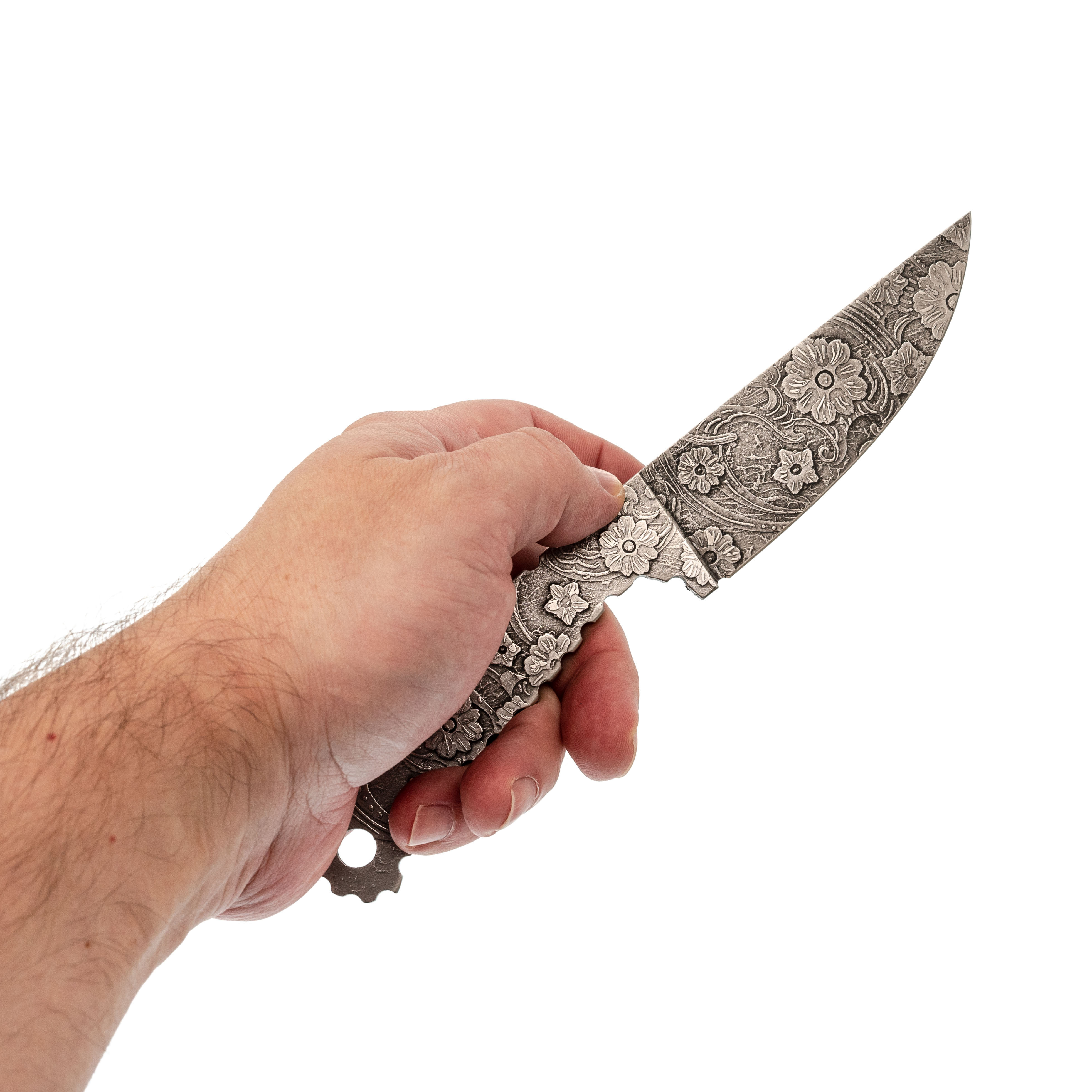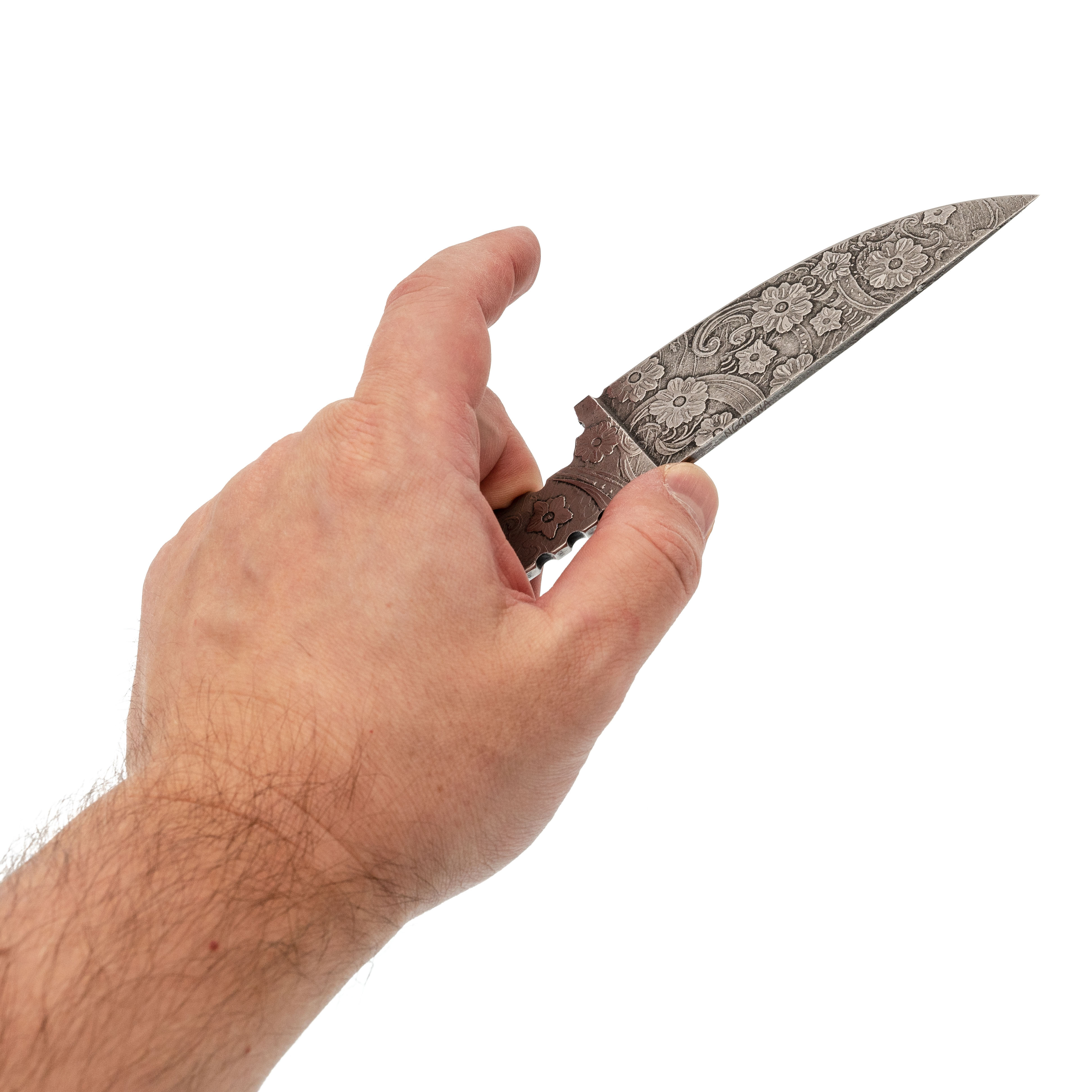 Художественное травление с цветочной темой - рисунок выполнен по металлу и занимает почти всю поверхность. Цветы добавляют модели характер, при этом покрытие устойчиво к обычным рабочим нагрузкам и не боится аккуратной эксплуатации.