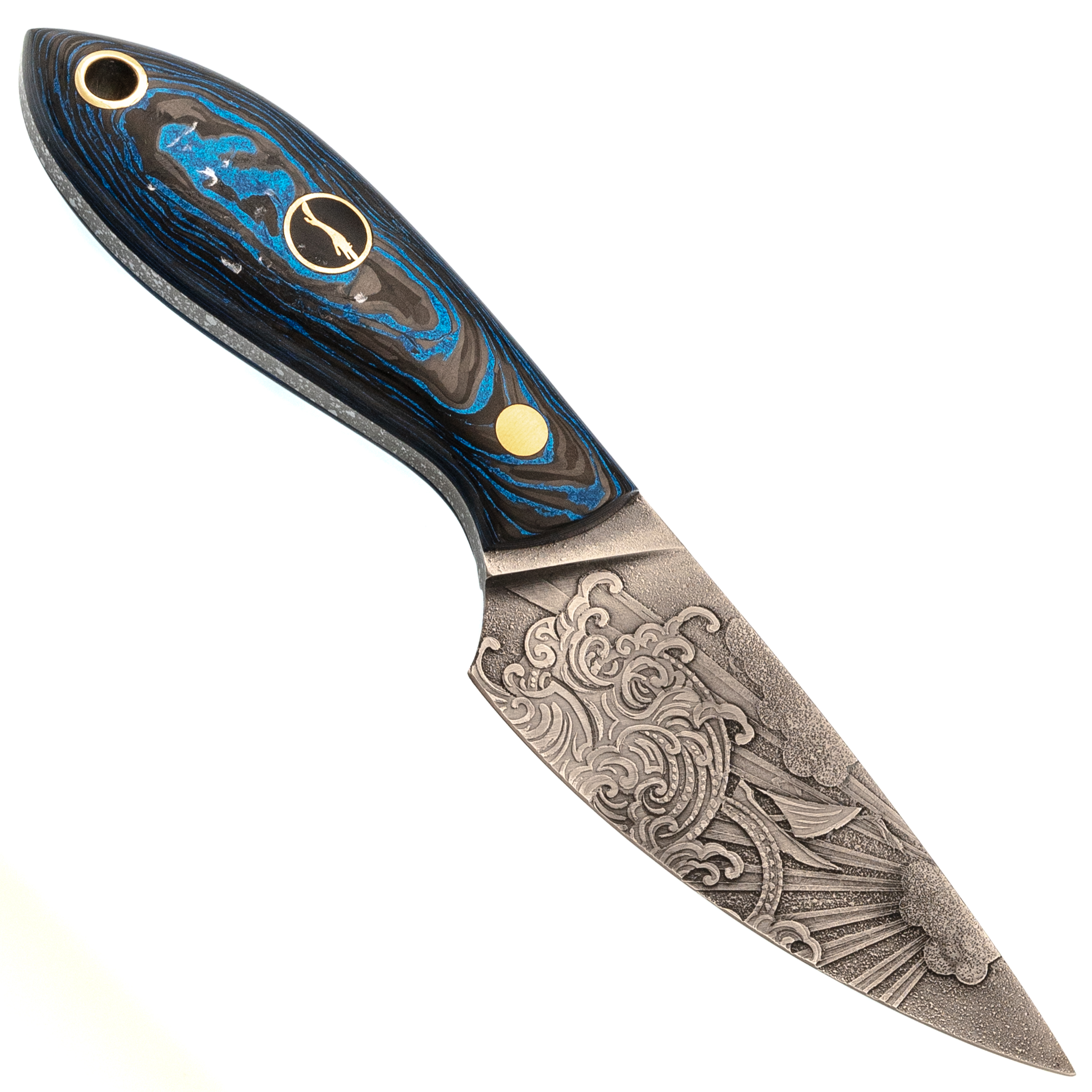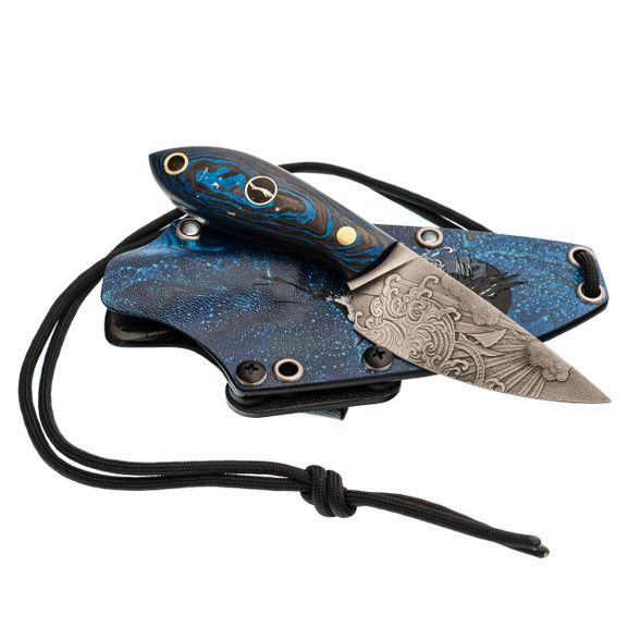 Скелетный нож Волчий Век МиниМасичька "Хокусай" Custom, сталь PGK, рукоять цветной карбон