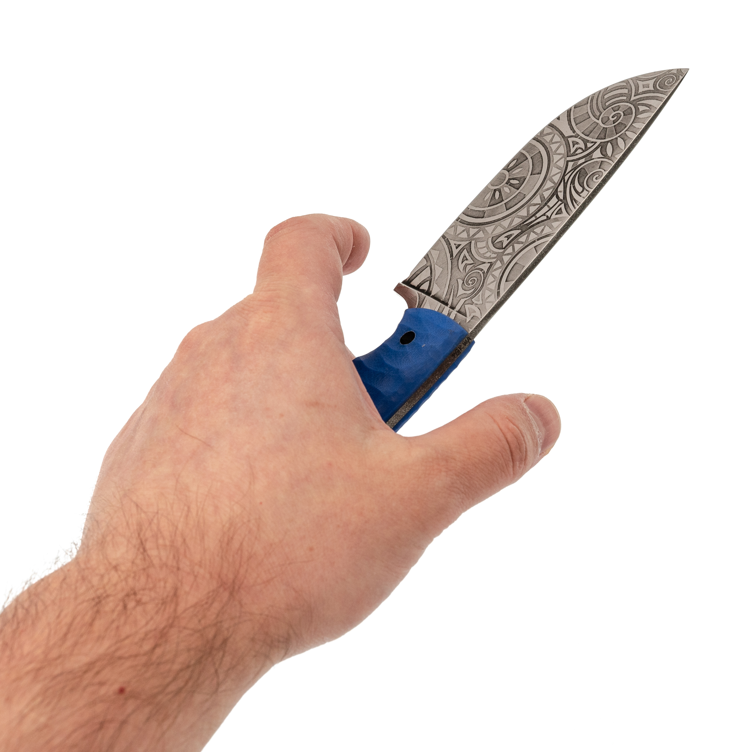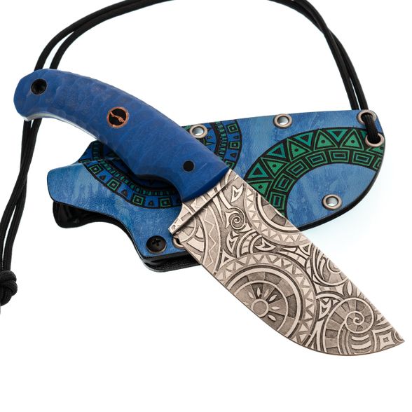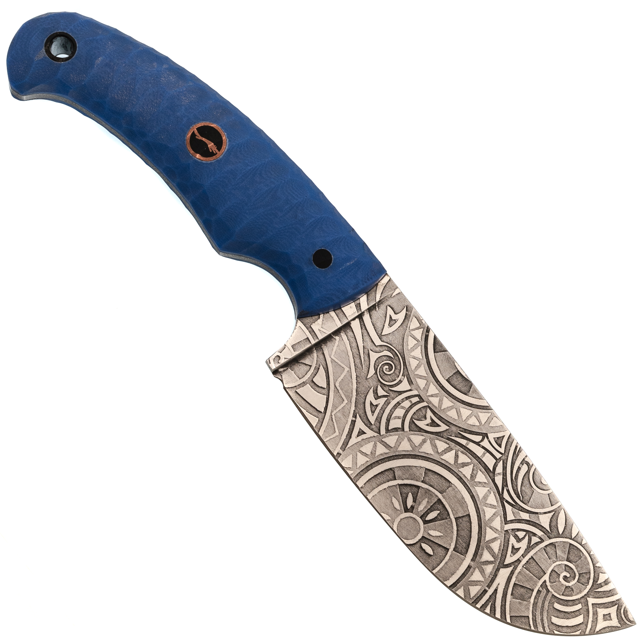 Скелетный нож Волчий Век Шихан "Маори" Custom, сталь PGK, рукоять G10, синий