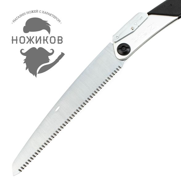 Японская складная пила Silky Super Accel (210 мм, 14 зубьев) используется в качестве компактной походной пилы, а также при выполнении садовых и плотницких работ. Прорезиненный корпус хорошо гасит вибрации и обеспечивает уверенный хват. Полотно лезвия - прямое, с возможностью фиксации в двух положениях. Благодаря специальной форме мелких закаленных зубьев (1,1 мм), направленных к рукояти, пиление веток происходит с большой скоростью, а трение сведено к минимуму. Лезвие пилы с многослойным хромированием надежно защищено от коррозии. Корпус складной походной пилы Silky изготовлен из легкого и прочного алюминия.