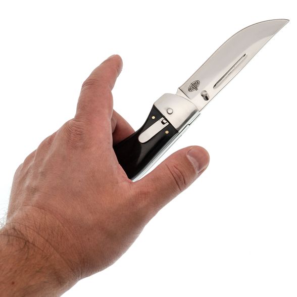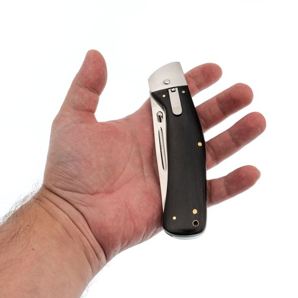 Нож красивый и функциональный - типичный "лагерный" нож. Неожиданно оказался больше по размерам, чем я предполагал, но это даже к лучшему. Удобный, тяжёлый, надёжный. Очень хорошо!